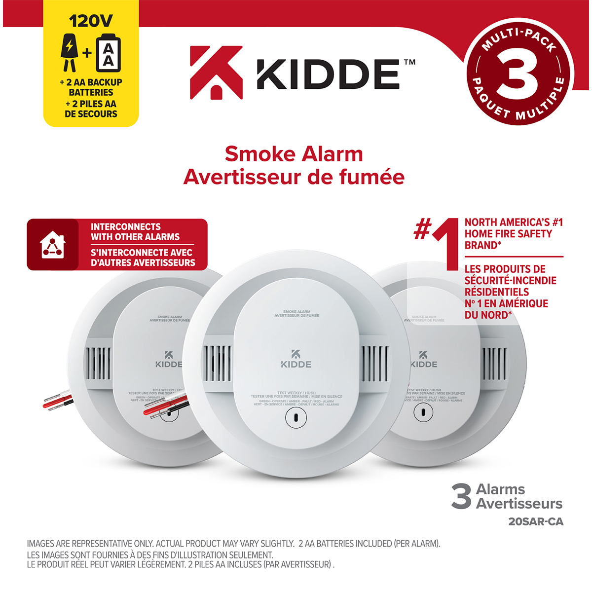 3PK Smoke Alarm 120V Hardwire W/AA Battery Backup