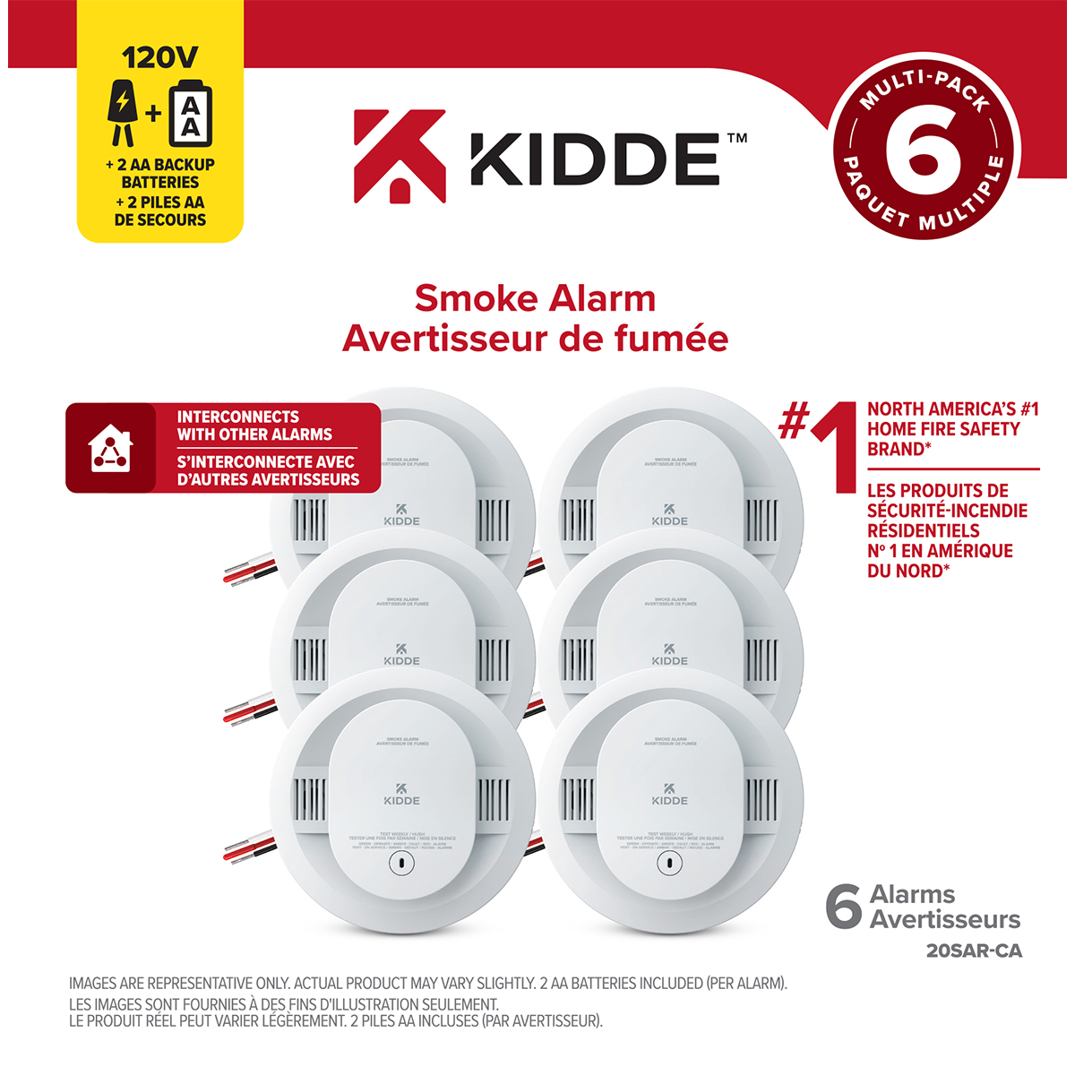 6PK Smoke Alarm 120V Hardwire W/AA Battery Backup