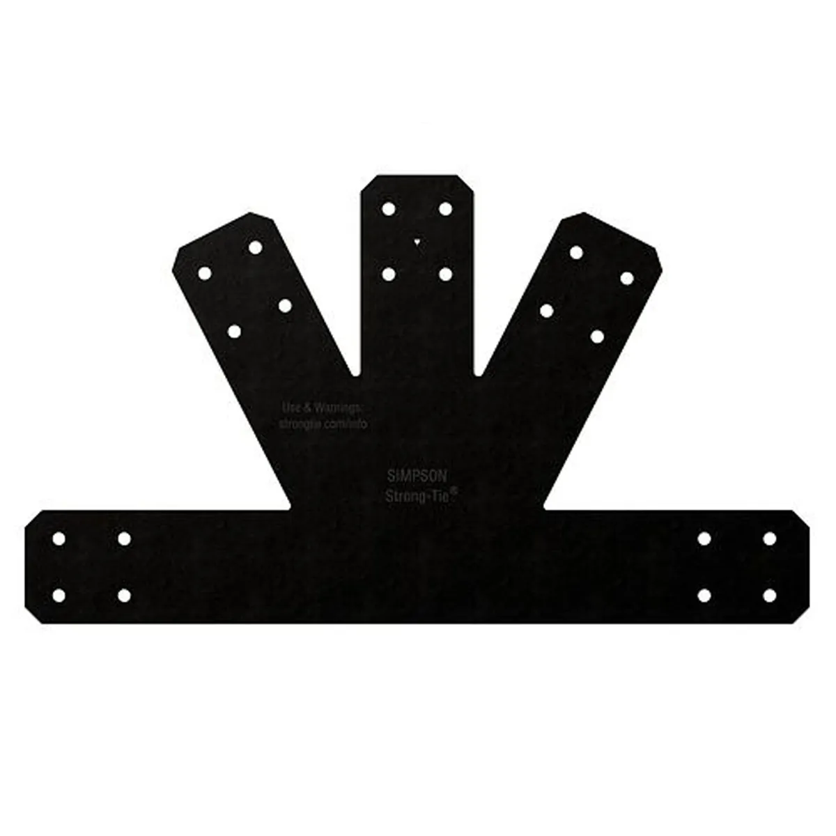 These gable plates provide reinforcement for a connection from a wood beam to three angled wood braces.