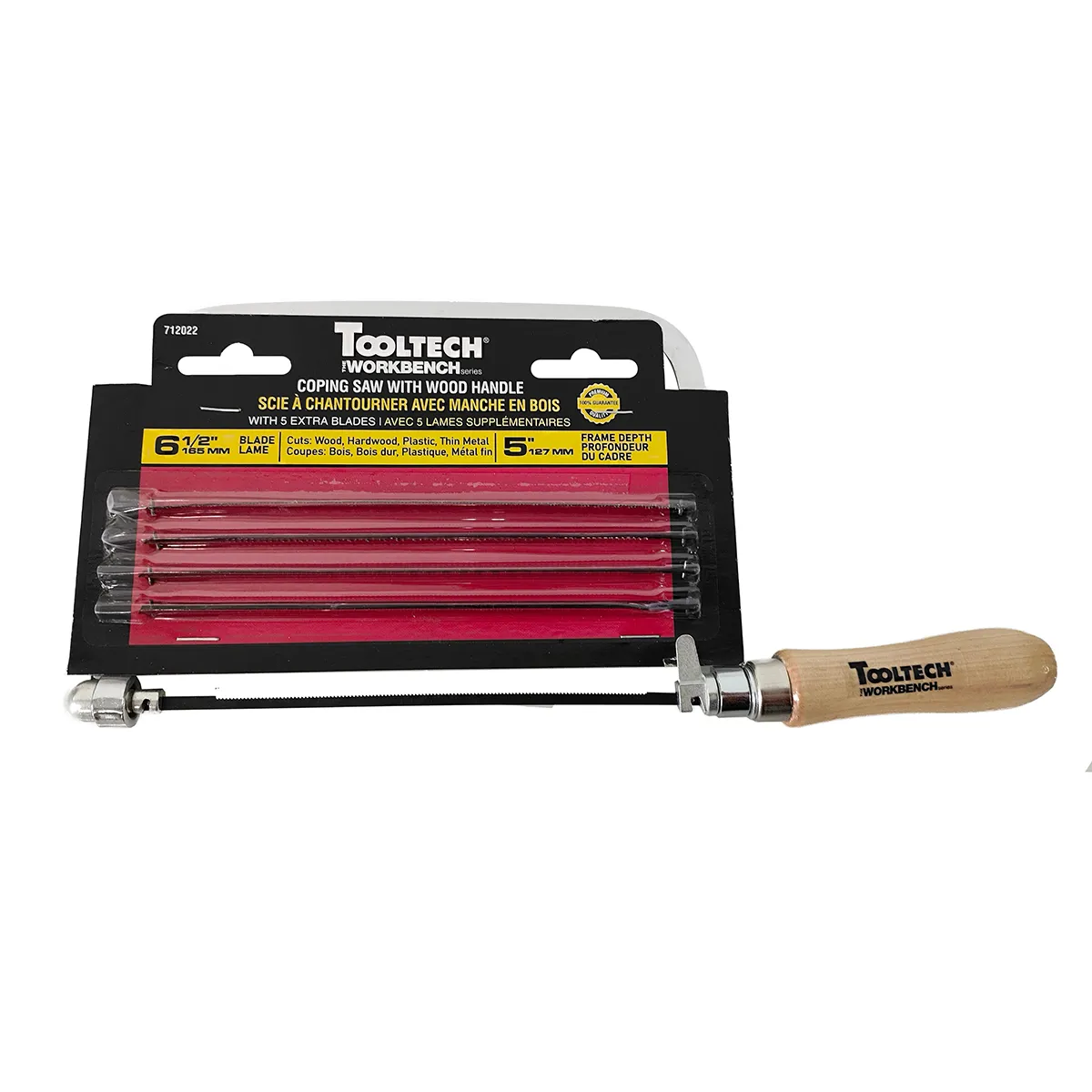 Sturdy steel frame; blade tensioning by turning the handle; easily adjustable blade fixture and an extra narrow hardened blade are among the features.