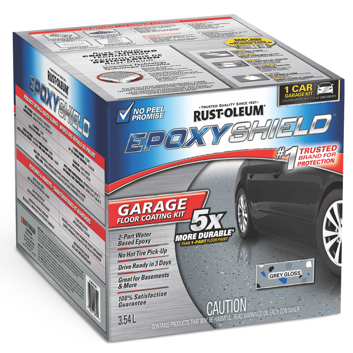 Brighten your garage with a clean; glossy; showroom-quality floor. EPOXYSHIELD® Garage Floor Coating Kit applies in one easy coat and protects against gasoline; antifreeze; motor oil; salt; hot tire pick-up and cracking—for years to come.