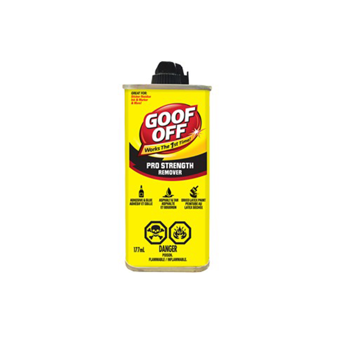 - Goof off pro strength works the first time; quickly and easily removing those tough spots and stains.
