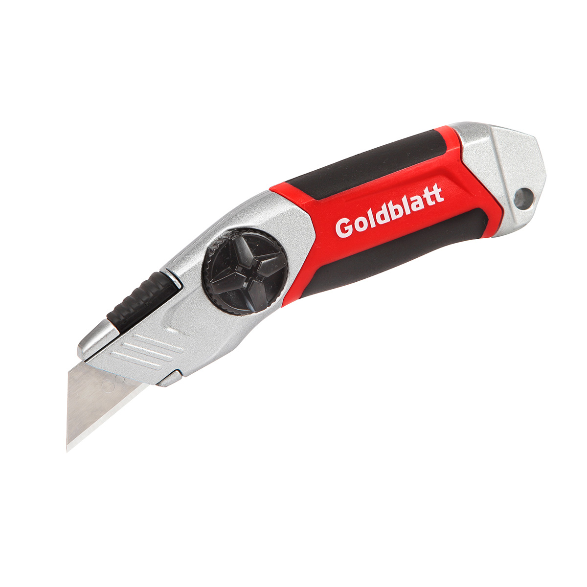 This new unique utility knife features die cast zinc alloy construction, which maximizes job site toughness and durability providing a long lasting tool. It incorporates Goldblatt’s quick-change system that greatly simplifies the chore of replacing worn out blades and allows you to store up to 5 spare blades in a separate, easily accessible compartment located in the handle. This helps ensure the user never runs out of blades at an inconvenient time.