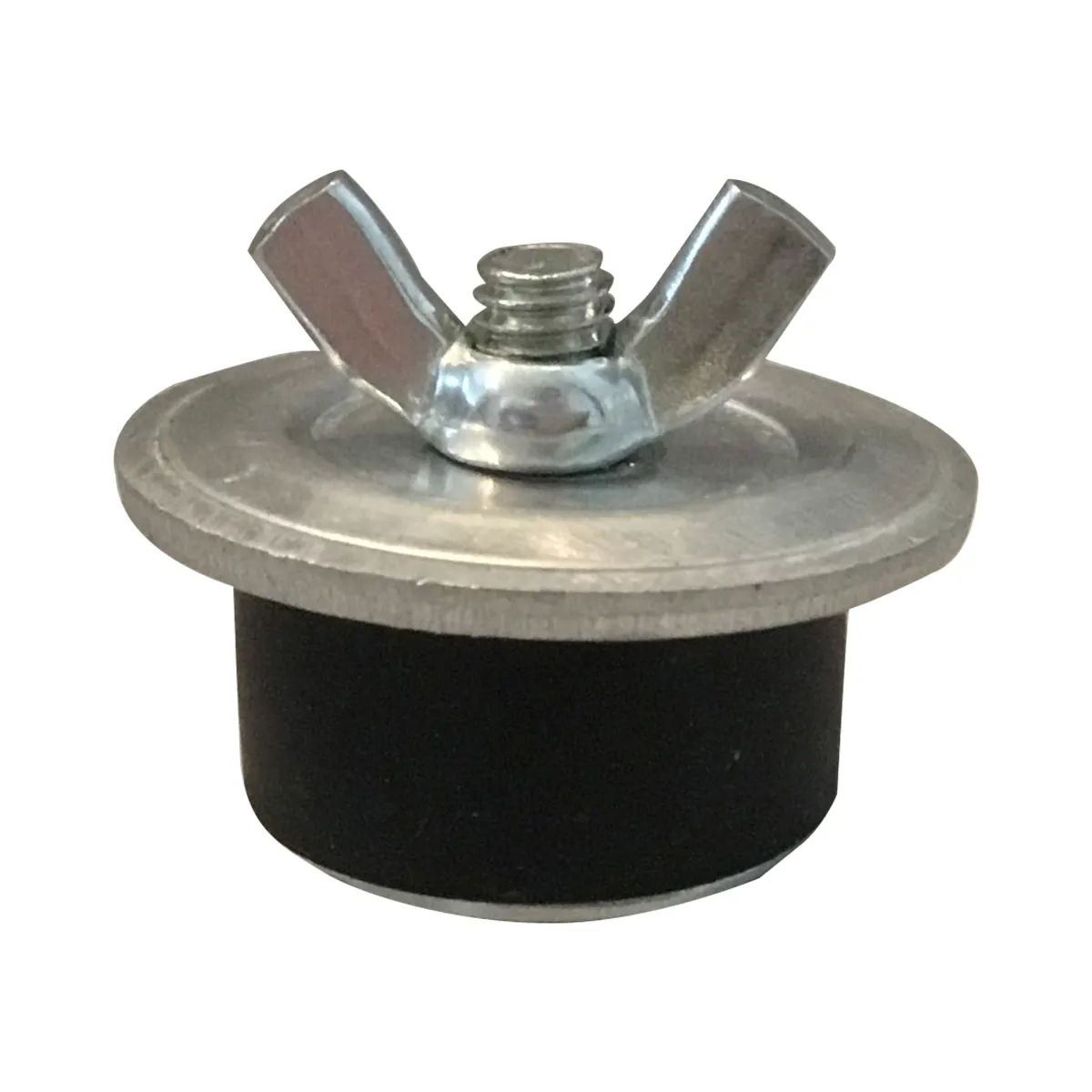 Compressioin plug fitting has a butterfly nut that expands from 7/8" to 1" when screwed in.