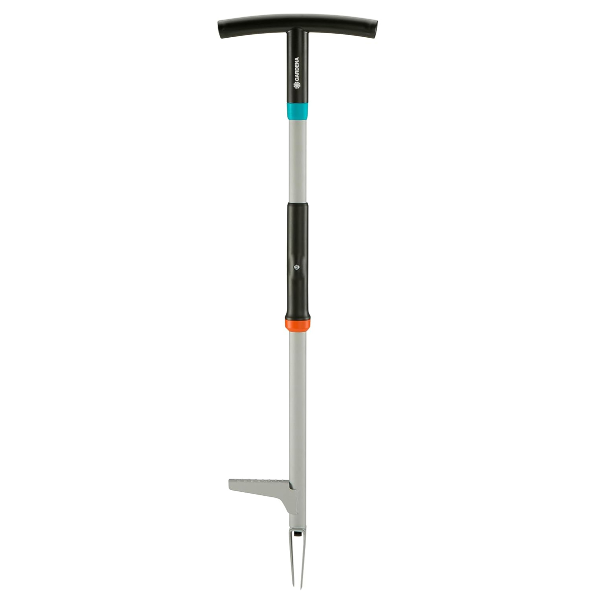 Environmentally friendly. << The Weed Puller from GARDENA is the ideal tool to effectively remove unsightly weeds in your lawn and flower beds. After all - strenuous but necessary regular weeding is not the most popular garden chore. However; this weeding tool allows pleasantly simple and effective weeding without polluting the environment. The patented blades of the Weed Puller are particularly narrow and close together; making this design is very well suited to pulling up dandelions in your lawn without leaving large holes. Working with the practical Weed Puller from GARDENA is pleasant and gentle on your back; even over longer periods of time. There is a practical footrest at the lower end of the device; making it easier to dig into the ground. A specially shaped handle enables a comfortable motion when rotating the weeding blade. The integrated release mechanism makes it easier to throw out the weeds. This method of weeding works purely mechanically and without chemicals; protecting your cherished flora and fauna while still maintaining a beautiful and well-kept garden free of dandelions and other weeds.